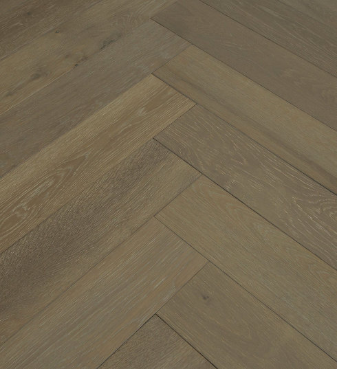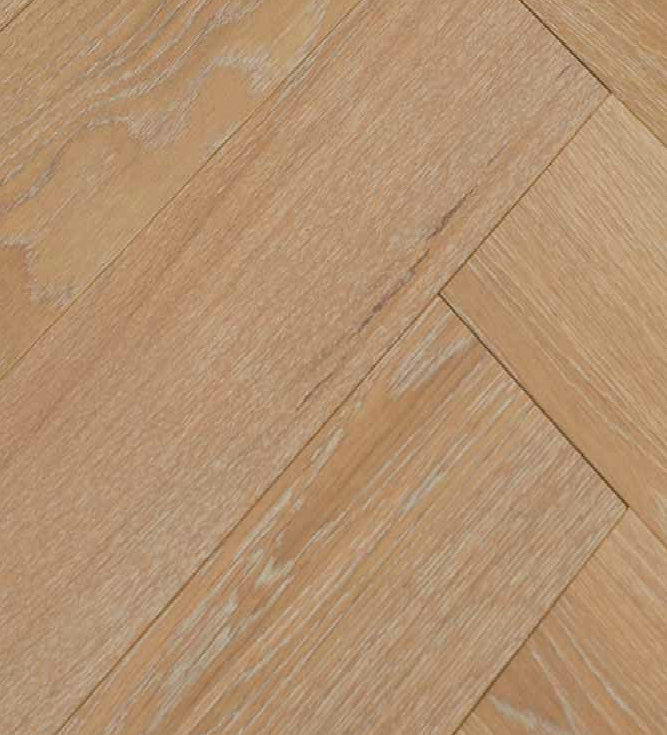 Available in Random Length and Herringbone Style | Wire Brushed French Oak | 5″ Wide | UV, Matte Finish | T&G with Beveled Edges and Ends